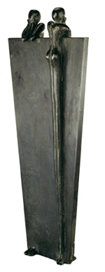 Das Halbrelief "Lebensbaum" greift bewusst christliche Motive auf, z. B. das Werden und Vergehen. Werden und Vergehen erhalten im Kreuz Jesu Christi eine andere Wertigkeit, eine andere Deutung, weil das Kreuz Sinnbild dafür ist, dass mit dem irdischen Vergehen ein Neuwerden in Christus verbunden ist. Mir als Theologen scheint es eminent wichtig, dass wir die Leidenschaft und die Sinnlichkeit, alles, was zu unserem Menschsein hinzugehört, in den künstlerischen Prozess mit einbeziehen. Nur in diesem lebendigen Dialog wird es uns möglich werden, unsere christliche Religion vor der Erstarrung in alten Formen zu bewahren und ihr im Gegenteil in neuen menschennahen, auch gefühlsbetonten Formen zu neuem Leben zu verhelfen. Überblickt man das Werk von Peggy M. Kanacher, so lässt sich abschließend sagen: Ihre Skulpturen sind keine Abbilder einer äußerlichen Realität, keine fotografischen Schnappschüsse. Es sind deutende Bilder, die die Innerlichkeit des Menschen berühren, Reflexionen der Künstlerin über unsere Zeit und unser Weltinneres. Es ist die Leidenschaft, die für die Künstlerin als Ausgangspunkt zu Betrachtungen und Reflexionen führt und konsequent zu innerer Auseinandersetzung und intensiven Kommunikation einlädt. Ihre Skulpturen artikulieren eine tiefe Sinnlichkeit und laden damit zum verweilenden Schauen, zum Reflektieren des eigenen Seins ein und gewähren eine Blick ins Innere. Werner Rombach, Dipl.-Theologe Blick in die Zukunft – Blick in die Vergangenheit